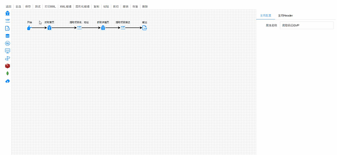 零代码的核心优势在此体现,通过简单的拖拽操作即可完成爬虫流程设计:
