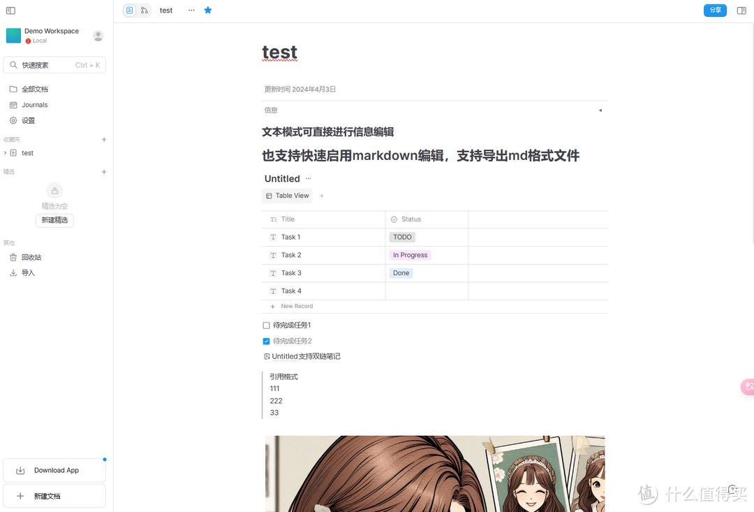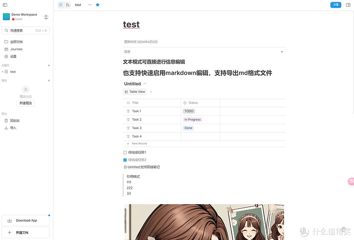 亮点:将文档、表格、思维导图等多元内容转化为可自由拖拽的「数字积木」,在无边画布上实现跨形式创作融合。通俗解释:传统工具中,笔记、白板、数据库是相互隔离的「孤岛」,而 AffiNe.pro 提供的「超融合工作空间」允许你像搭积木一样,将富文本段落、数据表格、嵌入式网页、思维导图节点甚至幻灯片直接放在同一画布,拖拽调整位置、关联逻辑关系,告别切换软件的繁琐。场景举例:产品经理小李在规划电商 APP 新功能时,直接在 AffiNe 画布左侧粘贴需求文档(富文本块),右侧用思维导图梳理用户旅程,中间嵌入竞品分析表格,底部添加手绘原型草图(形状块)。所有内容实时联动,修改需求文档时,关联的思维导图节点自动标红提示更新,避免信息断层。