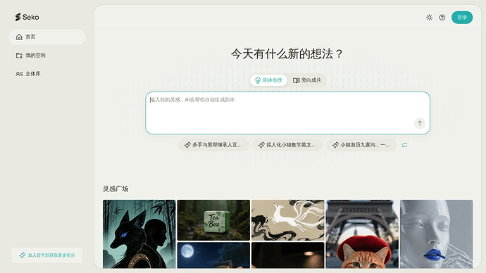 - 打开 Seko官网,用手机号或微信登录,新用户送300免费积分(可生成3分钟视频)。